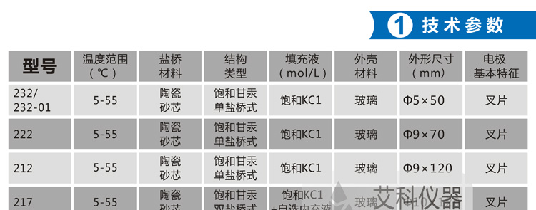 232/232-01、222、212:廣泛使用的**典型參比電極,性能穩定可靠。高溫(超過70℃)時性能變差。電極中含有汞成分,不應隨意丟棄。