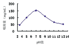 2.3.1.3 吸附pH的考察 將一定量的那他霉素浸提液分別調(diào)節(jié)成不同pH,然后使用HZ816樹脂吸附,考察pH對(duì)HZ816樹脂吸附量的影響,結(jié)果見圖4。